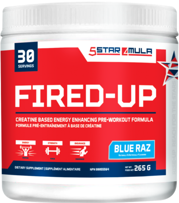 5STAR 4MULA FIRED-UP pre-workout is a “4MULA” that will help you constantly push throughout a high intensity workout. FIRED-UP pre-workout will get you to finish your workout without feeling any tinkles or even crashing. 5STAR 4MULA FIRED-UP pre-workout can be consumed in a low or high intensity workout. The perfect balance between caffeine and taurine will always help you keep a constant heart rate. FIRED-UP is the best pre-workout “4MULA” on the market that contains, in perfect dosages: caffeine, beta-alanine, creatine monohydrate and more. Fired-up will also help you push 1-2 “reps” more than usual. Need help for that last rep? 5STAR 4MULA FIRED-UP pre-workout will get you that extra kick to “Rise-Up” your daily game.